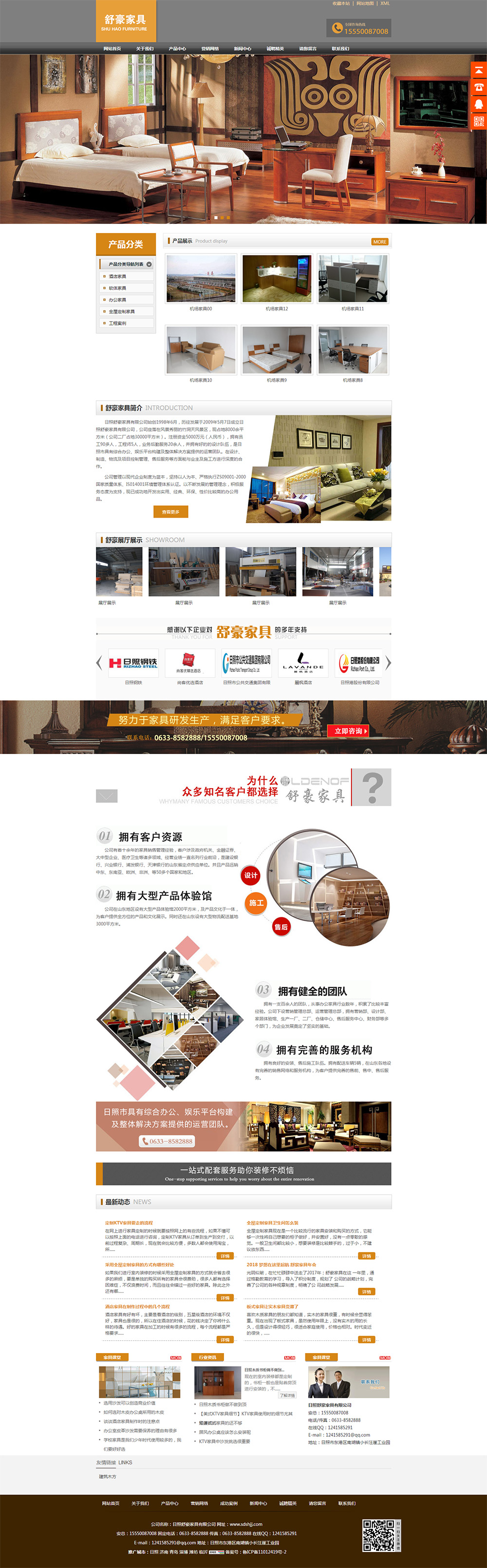日照舒豪家具有限公司始創(chuàng)1998年6月,歷經(jīng)發(fā)展于2009年5月7日成立日照舒豪家具有限公司,公司座落在風(fēng)景秀麗的竹洞天風(fēng)景區(qū),現(xiàn)占地8000余平方米(公司二廠占地30000平方米)。注冊資金5000萬元(人民幣),員工90多人,工程師5人,業(yè)務(wù)后勤服務(wù)20余人,并好的設(shè)計(jì)隊(duì)伍,是日照市具有綜合辦公、娛樂平臺(tái)構(gòu)建及整體解決方案提供的運(yùn)營團(tuán)隊(duì)。在設(shè)計(jì)、制造、物流及項(xiàng)目控制管理、售后服務(wù)等方面能與業(yè)主及施工方進(jìn)行深度的合作。