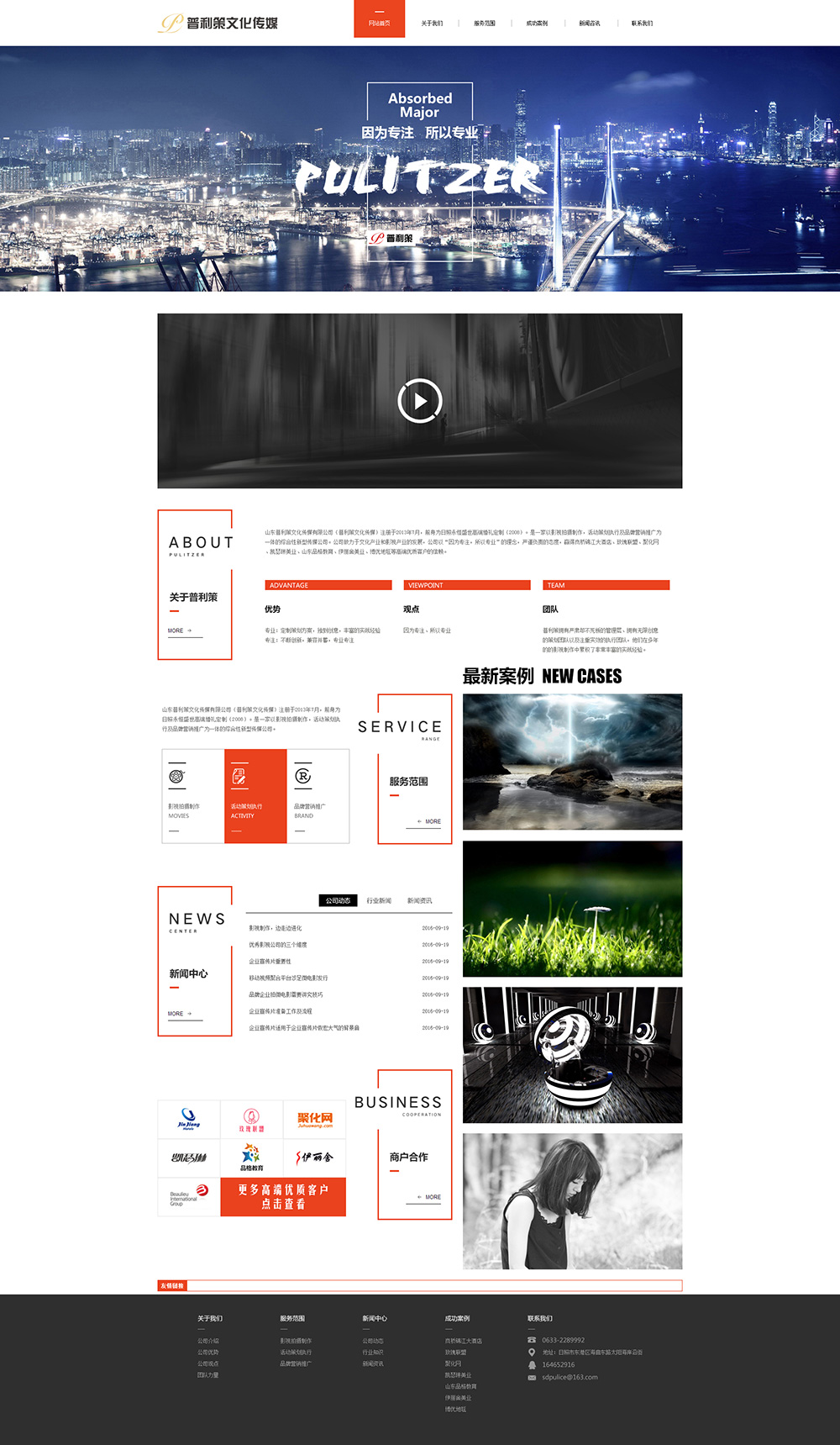 • v山東普利策文化傳媒有限公司(普利策文化傳媒)注冊于2013年7月,前身為日照永 恒盛世高 端婚禮定制(2008)。是一家以影視拍攝制作,活動策劃執(zhí)行及品牌營銷推廣為一體的綜合性新型傳媒公司。公司下置:策劃部,市場部,影視部及設(shè)計(jì)部四個部門。注冊3年來,致力于文化產(chǎn)業(yè)和影視產(chǎn)業(yè)的發(fā)展,公司以“因?yàn)閷?注,所以專 業(yè)”的理念,嚴(yán)謹(jǐn)負(fù)責(zé)的態(tài)度,獲得了廣大 客戶的贊許和好評。